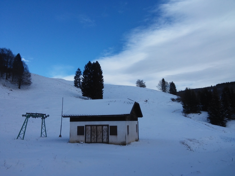 Nonostante la neve, abbiamo comunque scelto di non usare le ciaspole, perché in questo caso non le abbiamo ritenute necessarie (la neve era relativamente poca).