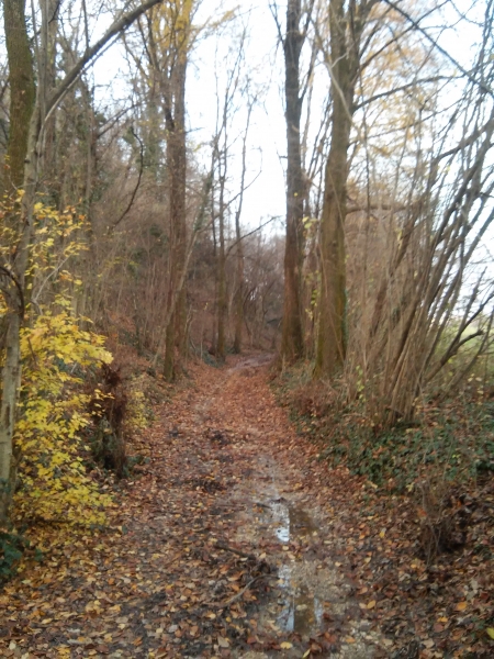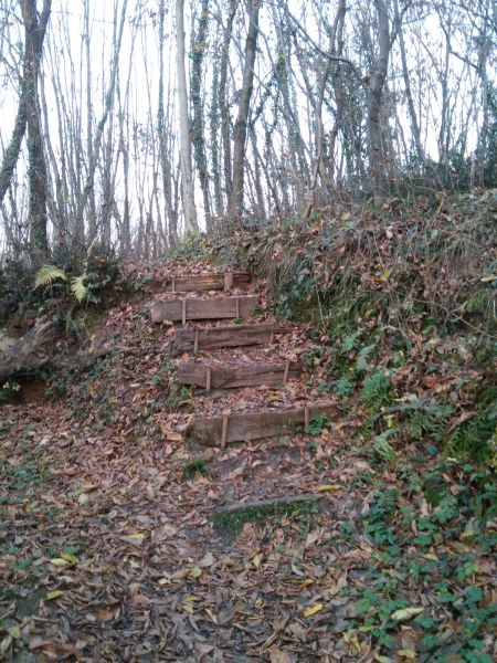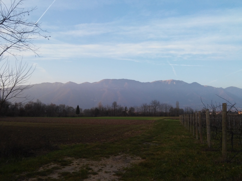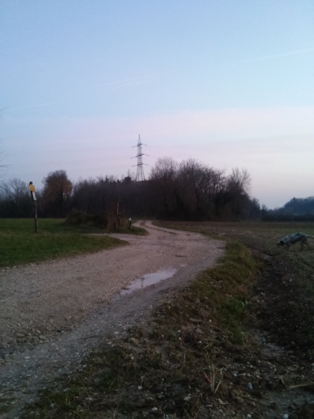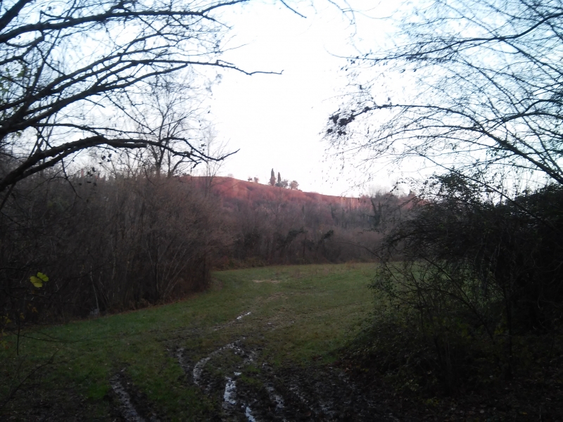 Parcheggiata la macchina proseguiamo verso nord per la strada asfaltata, quindi giriamo a sinistra nella stradina dell’agriturismo “Al Portego”. Dopo poche decine di metri la strada asfaltata lascia posto ad una strada di campagna in parte sterrata ed in parte di terra (in caso di pioggia può essere fangosa). Dopo aver passato un primo tratto alberato ed attraversato uno / due campi si arriva finalmente al sentiero vero e proprio, al’inizio piuttosto largo e poi piuttosto stretto. In fine comincia la salita che ci porta al Collalto. Prima di arrivare nel punto più alto del nostro percorso, però, facciamo una piccolissima deviazione che ci porta in un punto panoramico (vista direzione sud) e passiamo vicino a dei camminamenti risalenti alla Prima Guerra Mondiale.